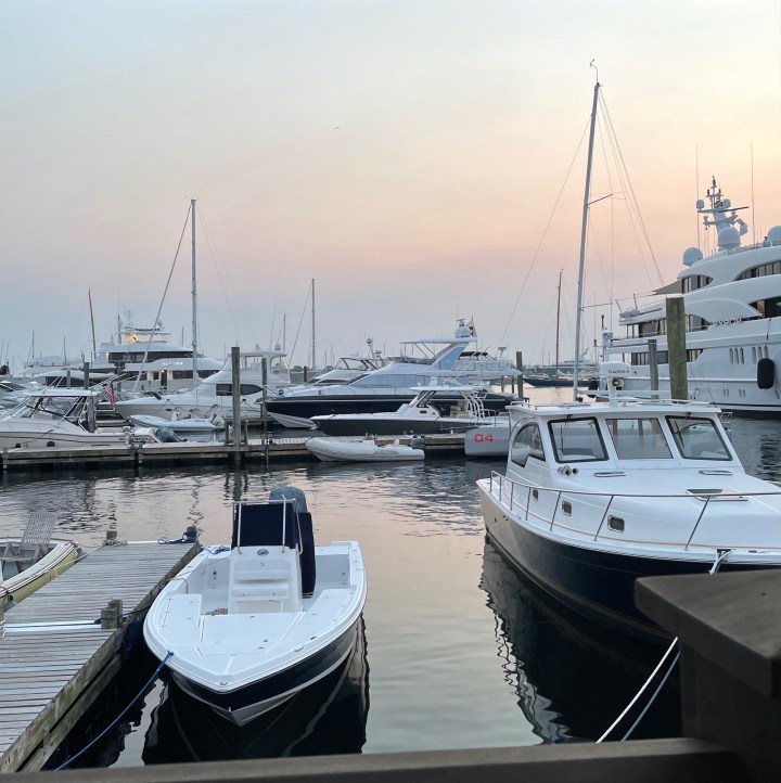 We had booked a sailboat to take us around the harbor for sunset, but sadly a storm was coming through and the water was too rough to go out. We all split up for dinner—H and I went to 22 Bowens, where we sat on the terrace with a great view of the harbor. For dinner, I wore a blue-and-white striped maxidress with a white cable-knit sweater draped around my shoulders (originally in case it got chilly on the boat ride), brown leather sandals, and a brown crossbody bag.